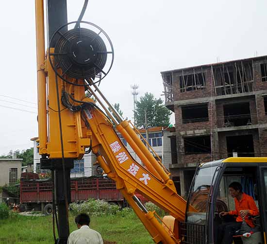 五、鑽杆采用雙缸(選配雙缸四繩)加壓,穩定性好,加壓力強,換鋼絲繩不拆鑽杆,維修簡單;